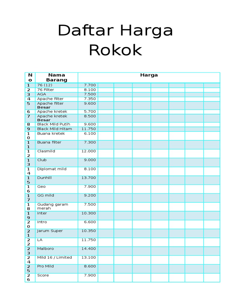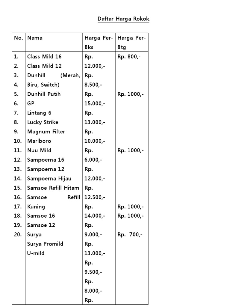 Daftar Harga Rokok doc Sumber : www.scribd.com